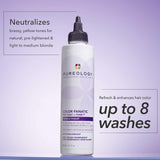 Step 2: Apply Pureology Color Fanatic Tone and Glaze Purple  evenly throughout hair. When using Tone and Glaze Purple apply to previously color-treated areas to neutralize unwanted tones.