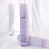 Spray Pureology Style + Protect Soft Finish Hairspray 8-12 inches from dry, styled hair in short bursts to give your look hold with a natural shine and finish.