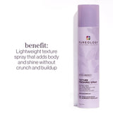 Pureology Texture Finishing Spray adds lightweight texture, body, and shine to colour-treated hair with key ingredient Sunflower Seed Extract and a signature aromatherapy blend of Tuberose, Almond Milk, and Cedarwood. Our patented Antifade Complex® is infused into every formula to protect colour vibrancy and ensure lasting colour payoff. Sunflower Seed, a UV Filter, and Vitamin E fight colour-depleting environmental effects while ensuring lasting shine. Our dual-benefit formulas provide colour protection and customized care to address individual hair needs.
