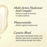 - Multi-Action Hyaluronic Acid Complex rehydrates from within to deliver a surge of moisture and increase elasticity.