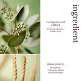 Key ingredients Wheat Protein and Eucalyptus Leaf Extract and a signature aromatherapy blend of Pink Grapefruit, Wild Rose, and Cedarwood.
