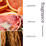• Aromatherapy blend of Pink Grapefruit, Wild Rose, and Cedarwood